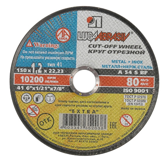Диск отрезной по стали Луга 150x22.2x1.2 мм