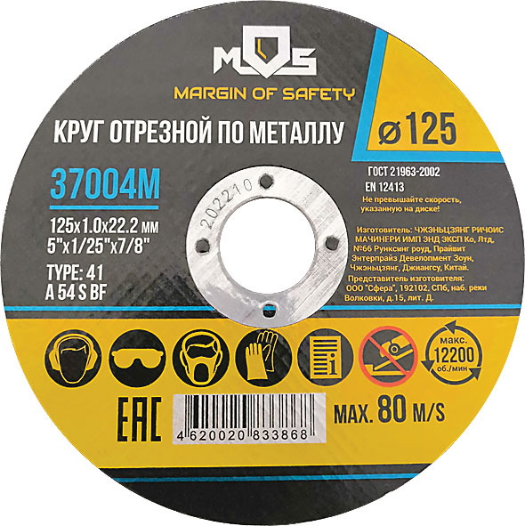 Диск отрезной по стали MOS 125x22.2x1.0 мм
